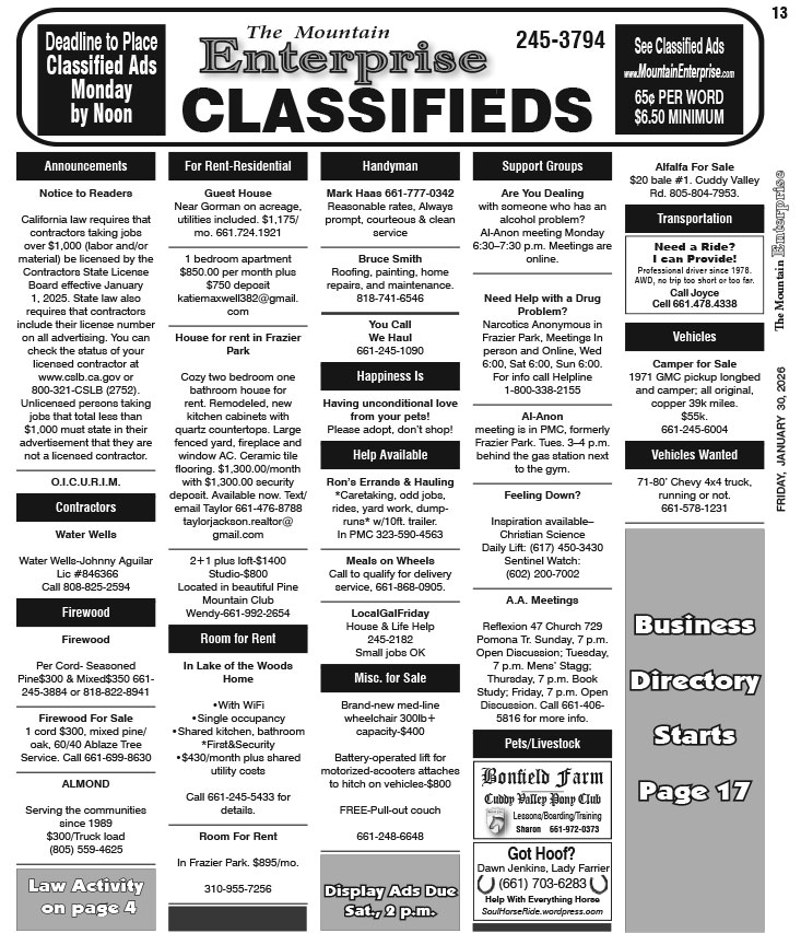 Full Size (733 × 853) | Back to The Mountain Enterprise: Classifieds.