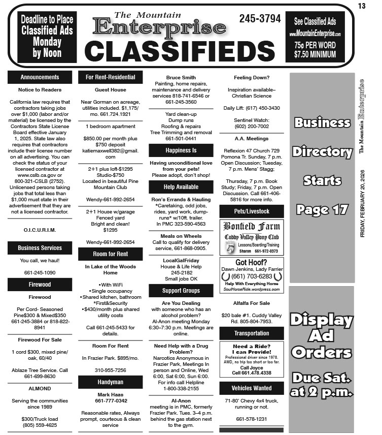 Full Size (753 × 856) | Back to The Mountain Enterprise: Classifieds.