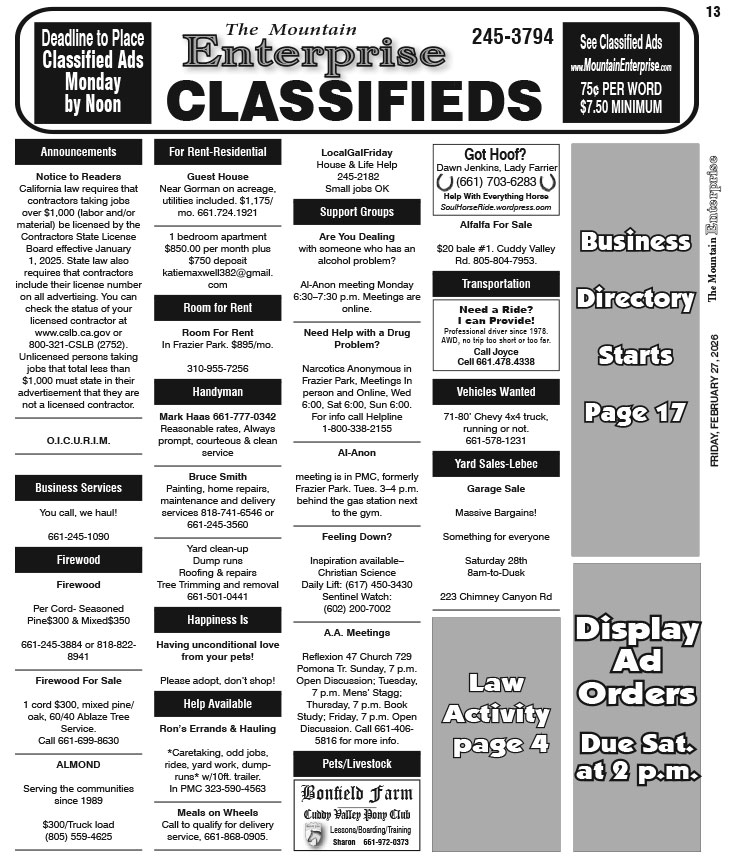 Full Size (753 × 856) | Back to The Mountain Enterprise: Classifieds.