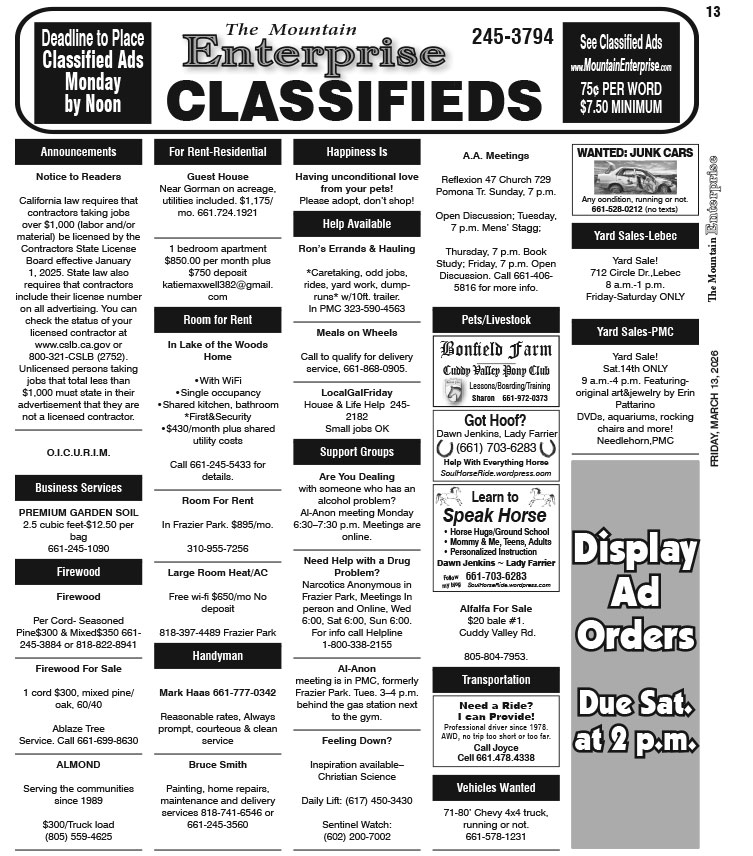 Full Size (753 × 856) | Back to The Mountain Enterprise: Classifieds.