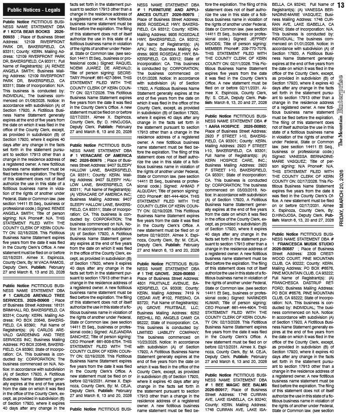 Full Size (721 × 852) | Back to The Mountain Enterprise: Classifieds.