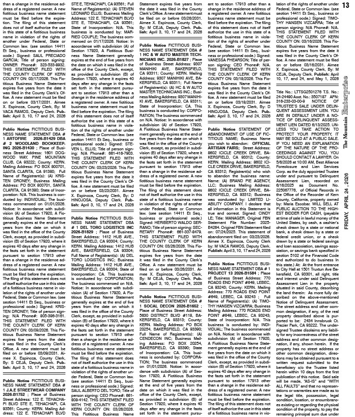 Full Size (723 × 849) | Back to The Mountain Enterprise: Classifieds.