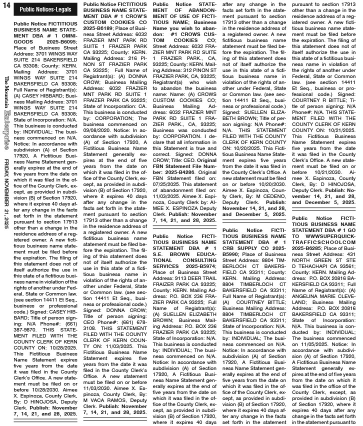 Full Size (726 × 852) | Back to The Mountain Enterprise: Classifieds.