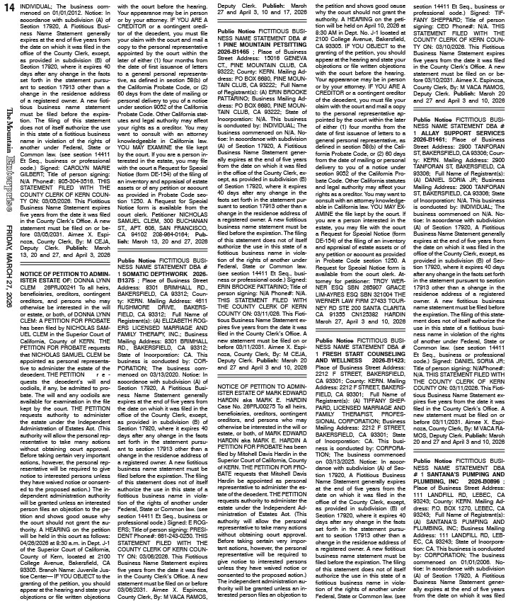 Full Size (725 × 849) | Back to The Mountain Enterprise: Classifieds.