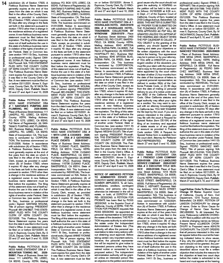 Full Size (725 × 854) | Back to The Mountain Enterprise: Classifieds.