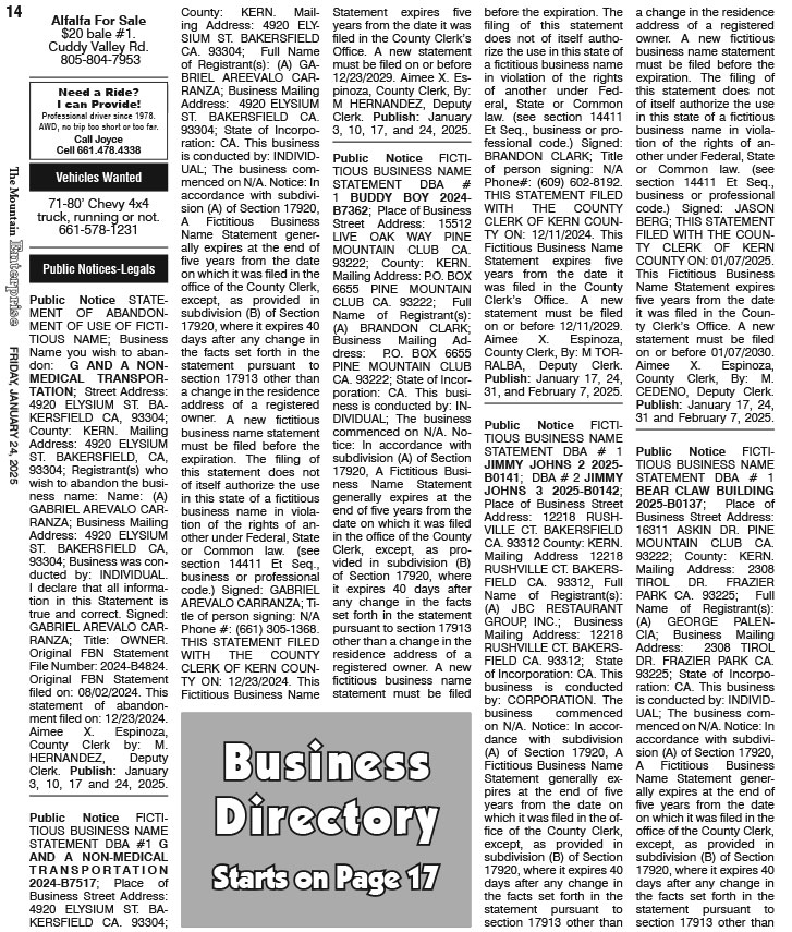 Full Size (727 × 855) | Back to The Mountain Enterprise: Classifieds.