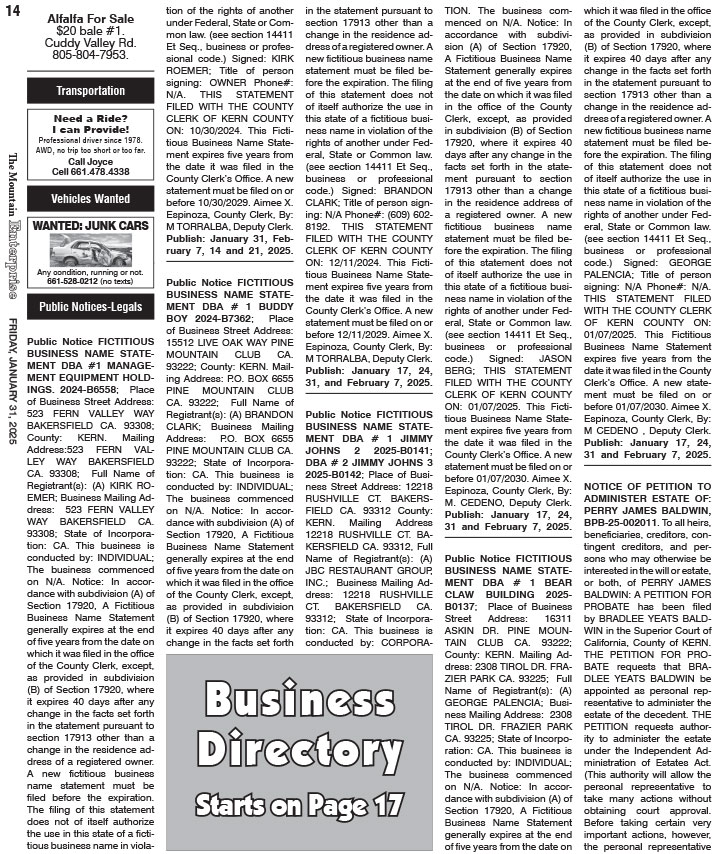 Full Size (726 × 854) | Back to The Mountain Enterprise: Classifieds.