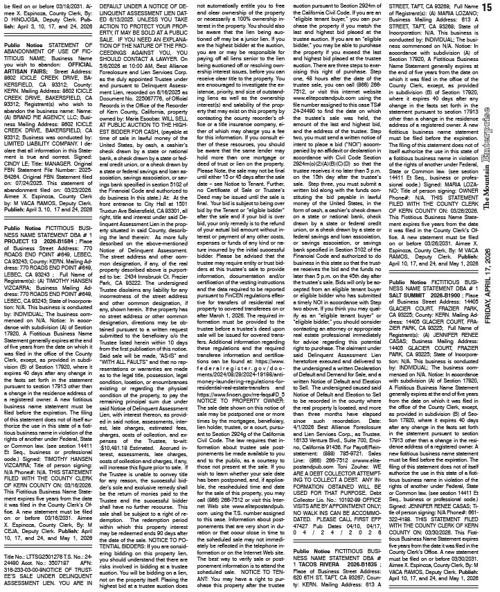 Full Size (722 × 854) | Back to The Mountain Enterprise: Classifieds.