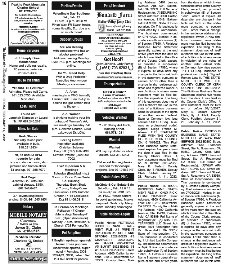 Full Size (725 × 855) | Back to The Mountain Enterprise: Classifieds.