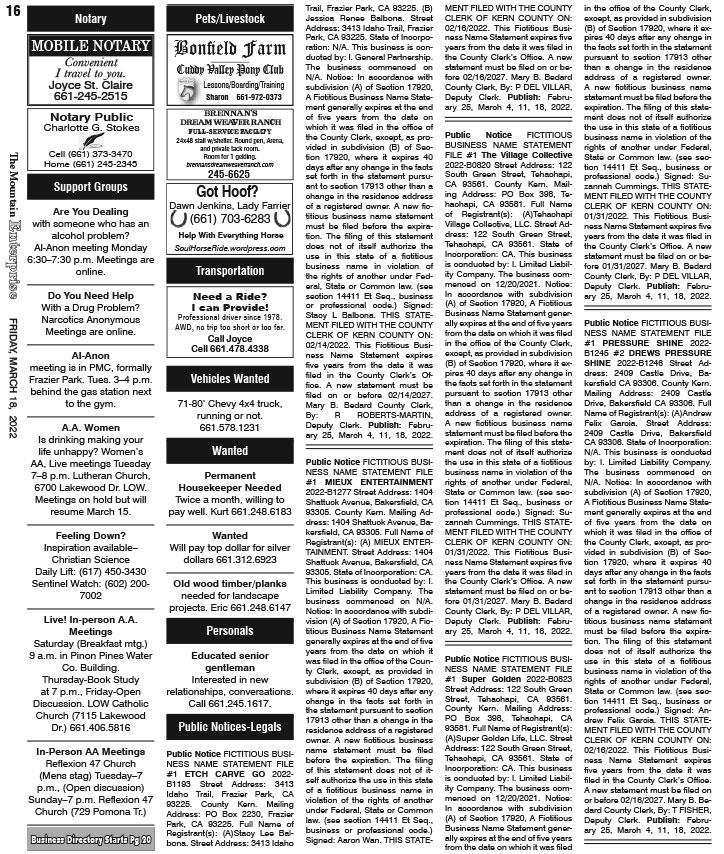Full Size (724 × 854) | Back to The Mountain Enterprise: Classifieds.