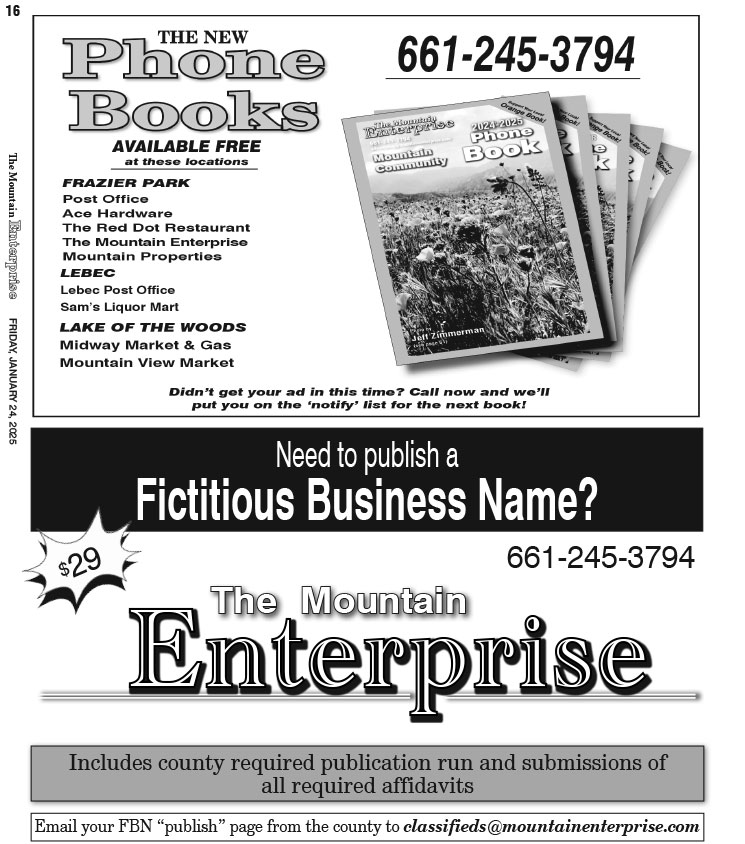 P.O. Box 610, Frazier Park, CA 93225