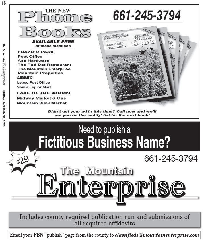 P.O. Box 610, Frazier Park, CA 93225
