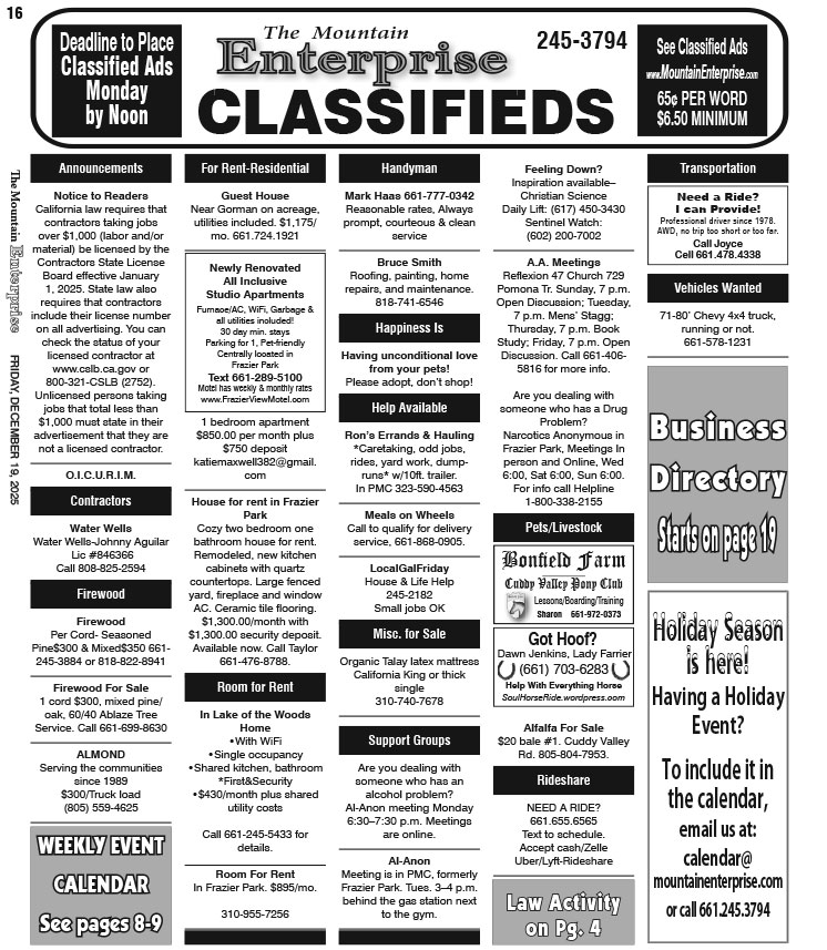 Full Size (746 × 857) | Back to The Mountain Enterprise: Classifieds.