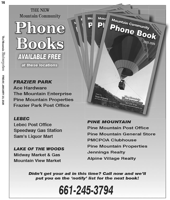 P.O. Box 610, Frazier Park, CA 93225