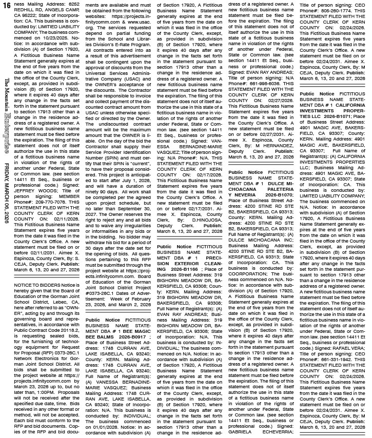 Full Size (725 × 854) | Back to The Mountain Enterprise: Classifieds.
