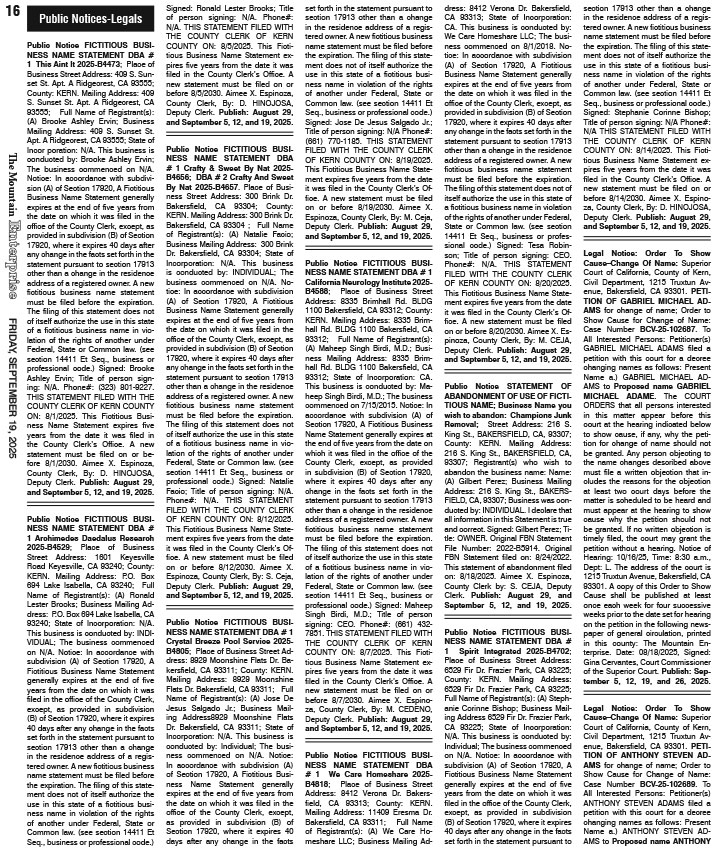 Full Size (722 × 848) | Back to The Mountain Enterprise: Classifieds.