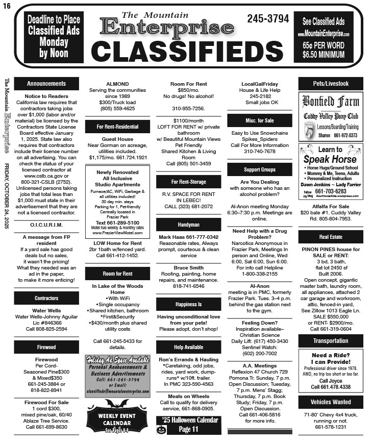 Full Size (727 × 870) | Back to The Mountain Enterprise: Classifieds.