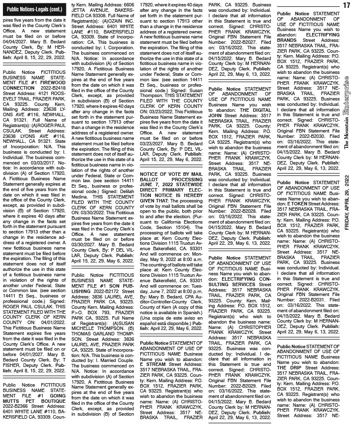 Full Size (723 × 865) | Back to The Mountain Enterprise: Classifieds.