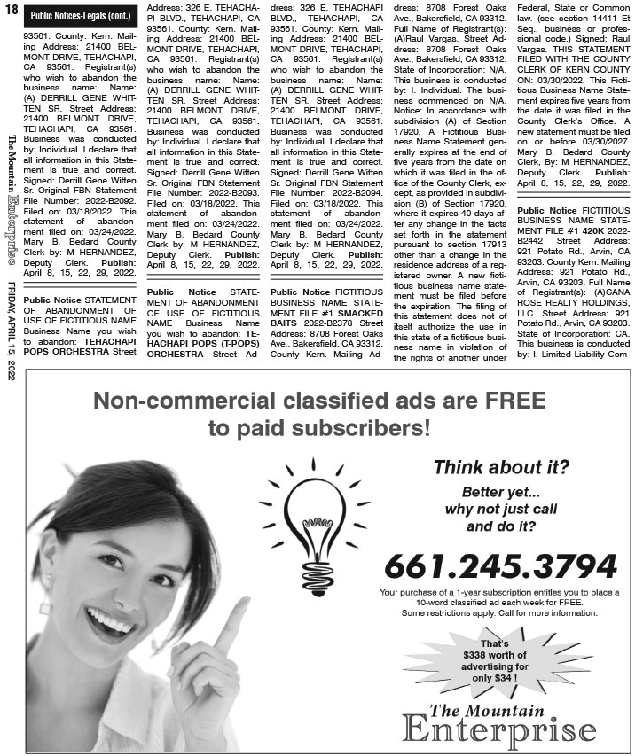 Full Size (725 × 853) | Back to The Mountain Enterprise: Classifieds.