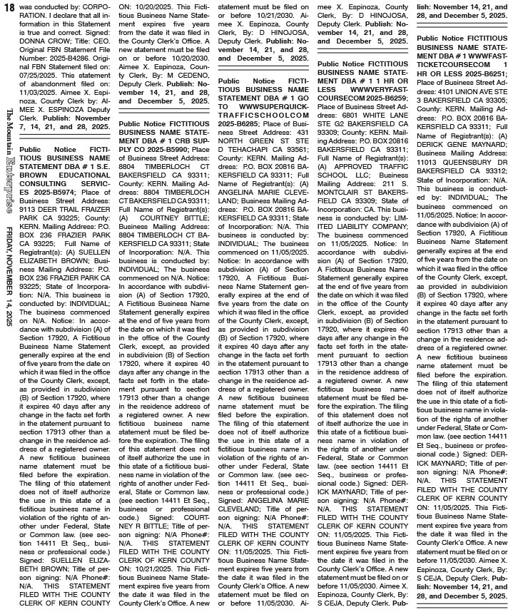 Full Size (726 × 858) | Back to The Mountain Enterprise: Classifieds.