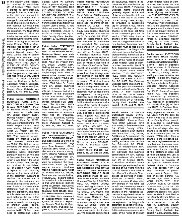 Full Size (725 × 861) | Back to The Mountain Enterprise: Classifieds.