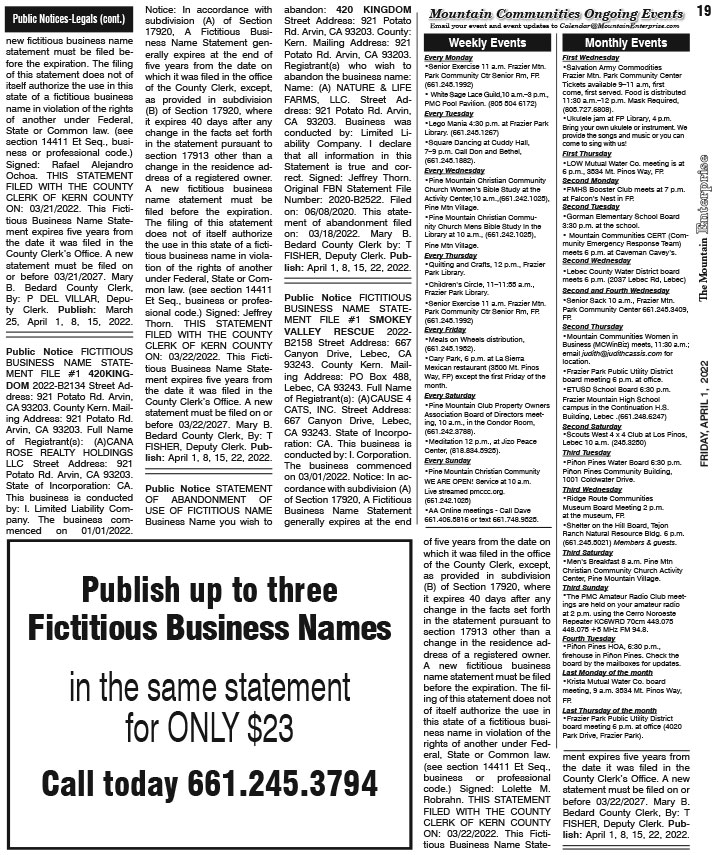 Full Size (723 × 855) | Back to The Mountain Enterprise: Classifieds.